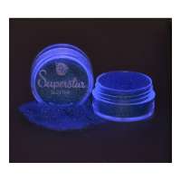 De fluor glitter heeft een wat matter effect en licht op onder blacklight.