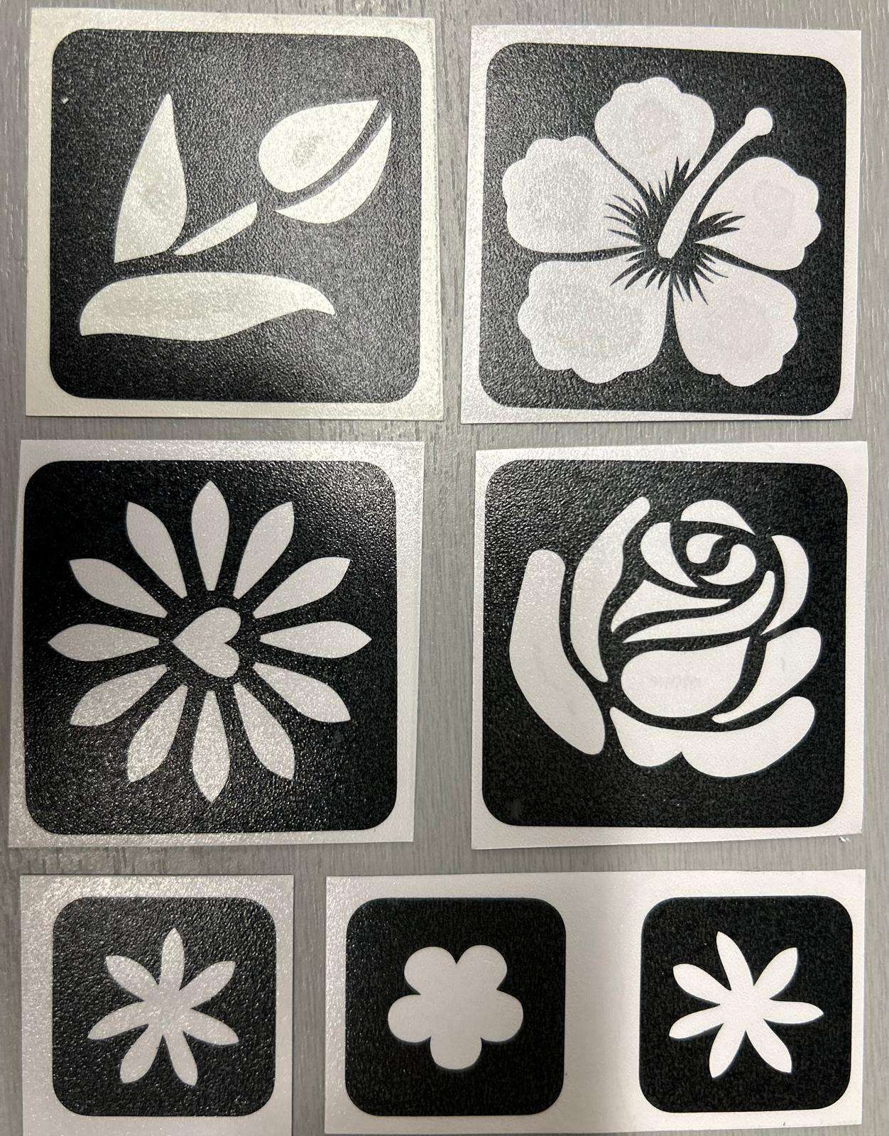 De stencils zijn bedoeld om een glittertattoo te maken, ze kunnen niet gebruikt worden als schminksjabloon omdat er een plak laag op zit.
