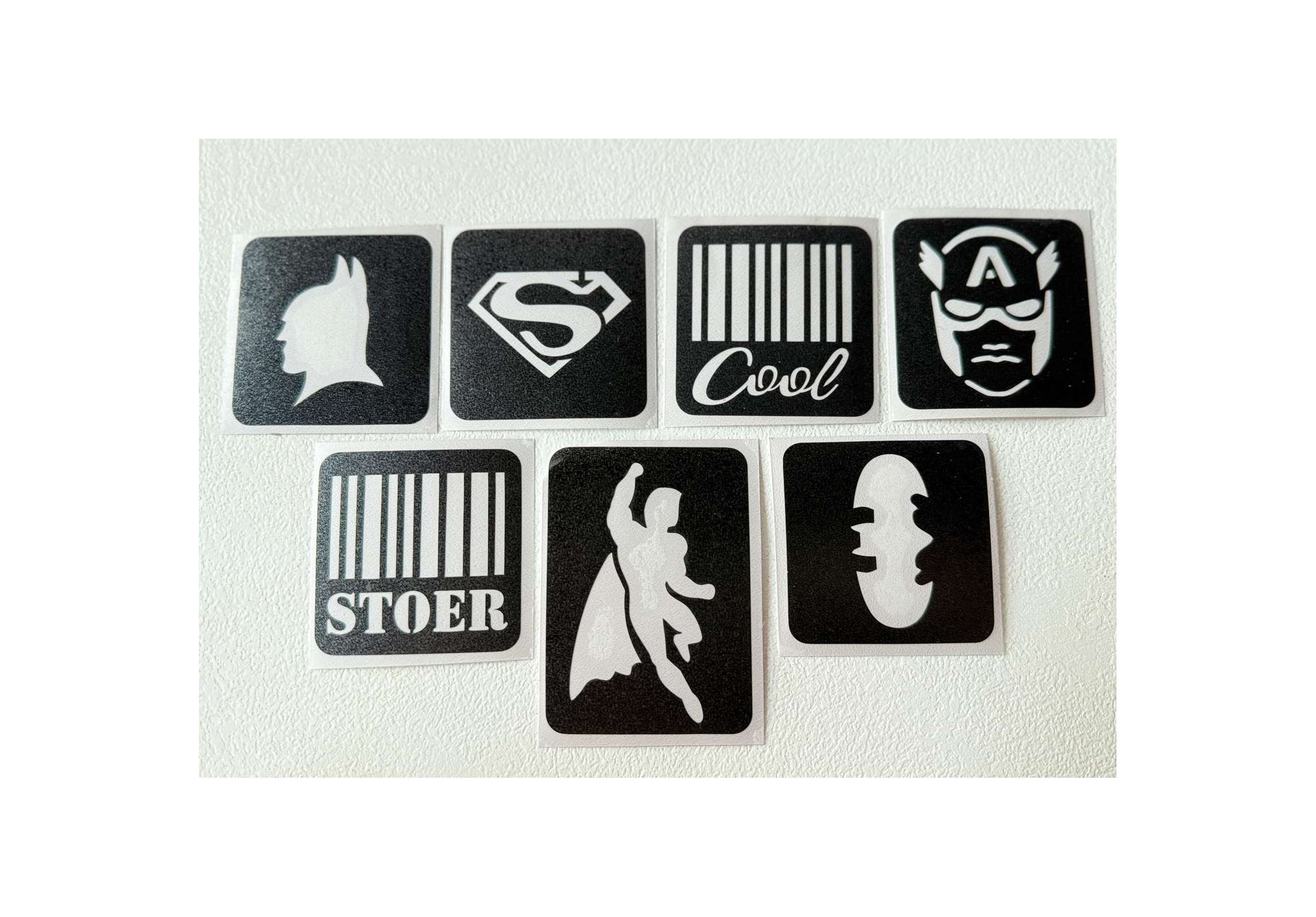 De stencils zijn bedoeld om een glittertattoo te maken, ze kunnen niet gebruikt worden als schminksjabloon omdat er een plak laag op zit.