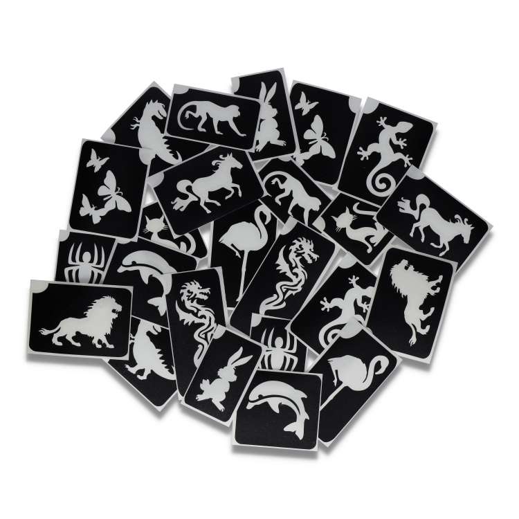 De stencils zijn bedoeld om een glittertattoo te maken, ze kunnen niet gebruikt worden als schminksjabloon omdat er een plak laag op zit.