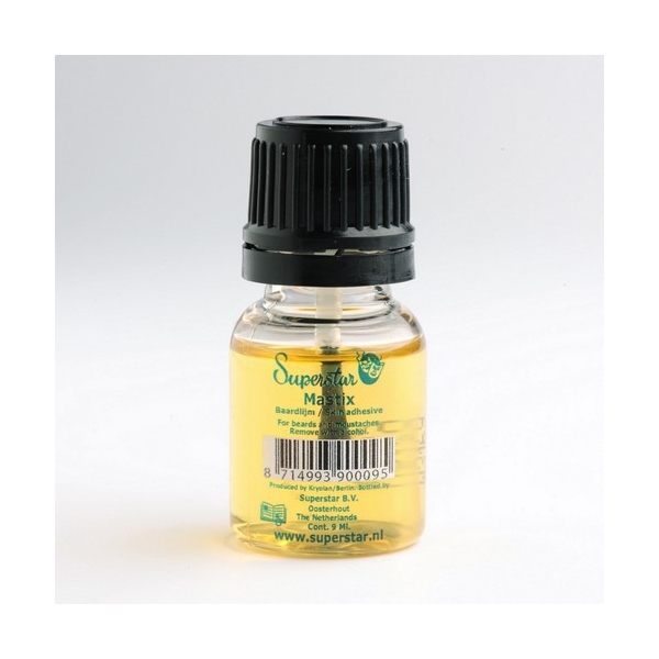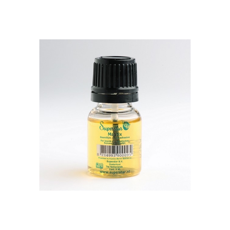 Huidlijm om latexdelen, baarden en snorren of bijvoorbeeld plaksteentjes aan te brengen.