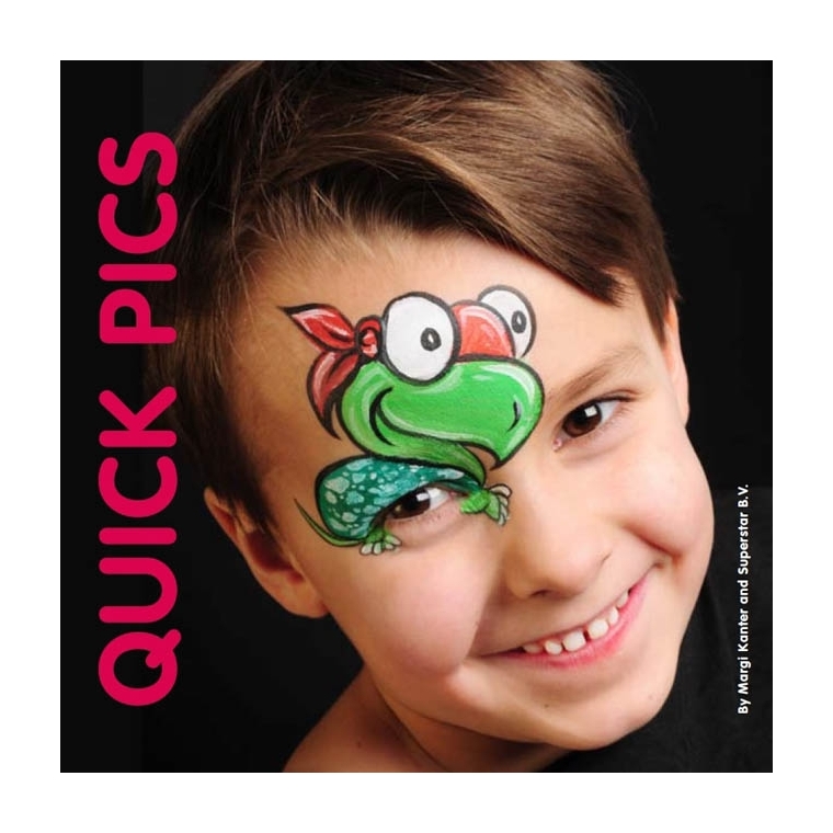 In het boek mooie voorbeelden van hoe snel een mooi model op de neus of rond het oog gemaakt kan worden. Alle modellen in dit boek zijn geschilderd met Superstar Face & Bodypaint.
