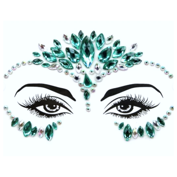 De steentjes zijn zelfklevend maar voor een avond lang plezier aanbrengen met Mastix gezichtslijm.