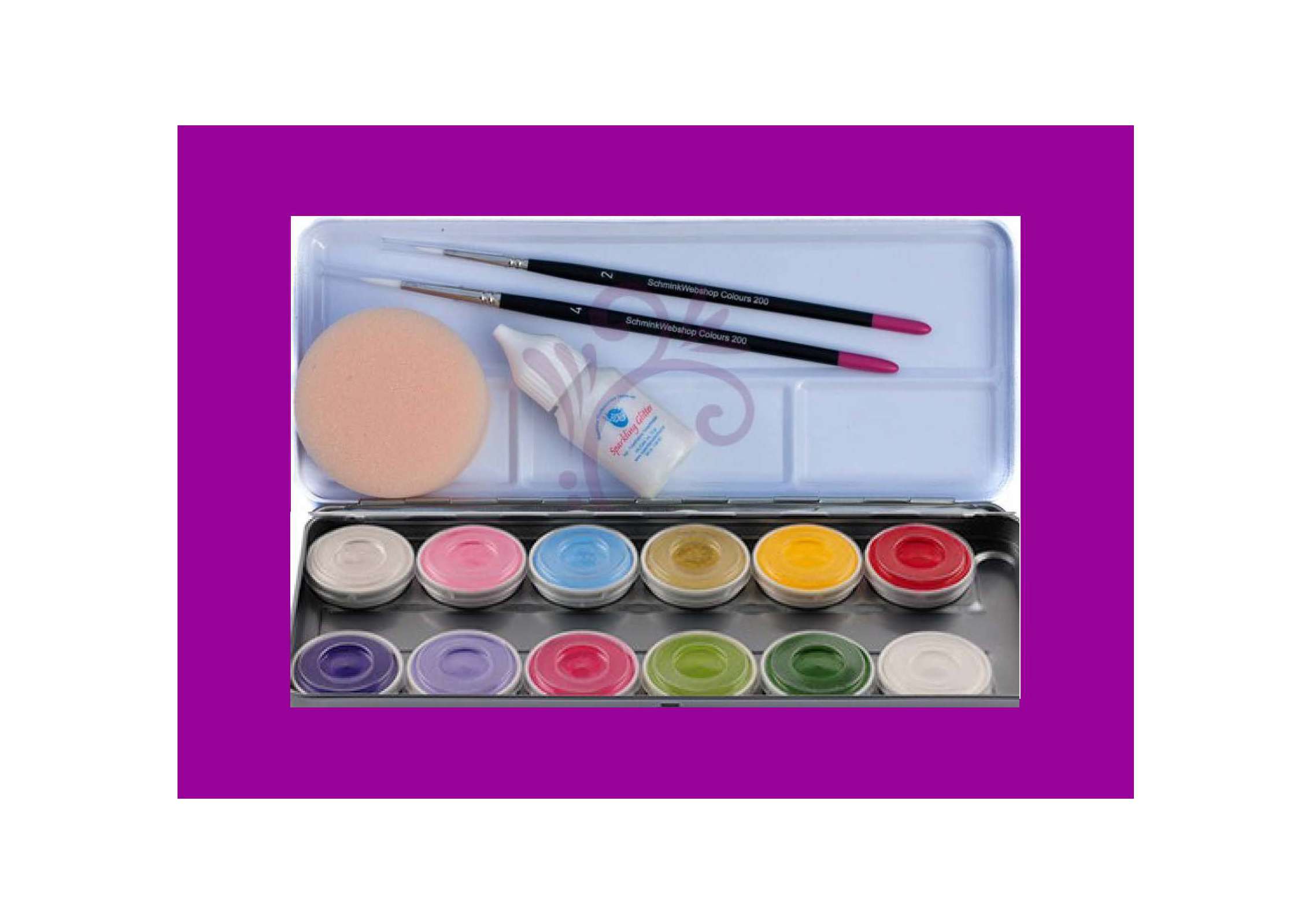 De matte kleuren zijn uitermate geschikt voor het schminken van de basis en het zetten van lijnen. Omdat de glanzende kleuren schmink wat zachter zijn zijn deze zeer geschikt voor het schminken van de basis van je creaties. Omdat de shimmer kleuren wat zachter zijn, heb je weinig water nodig om de schmink te activeren.