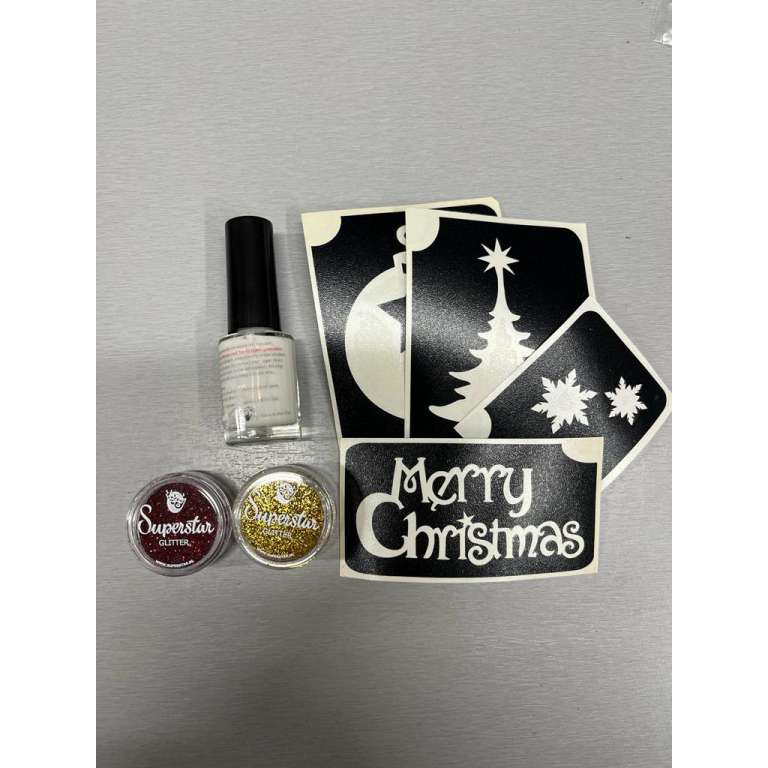 Tip: aan te vullen met losse stencils omdat de lijm en glitter genoeg is voor ongeveer 30 tattoos