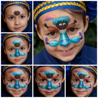 Op dezelfde manier kun je de oogjes maken, of nog leuker en sneller; plak er 2 bewegende plak-oogjes op met mastix (huidlijm) of glittertattoolijm.