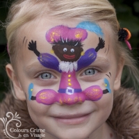 Je maakt het hoofdje snel mbv een sponspenseeltje, laat goed drogen en teken het het lijfje, de armen en benen met vrolijke kleuren.