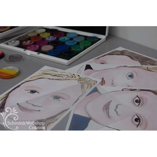 Tip: Maak een foto, scan of kopie van je geschminkte oefenbord en bewaar zo je prachtige ontwerpen.