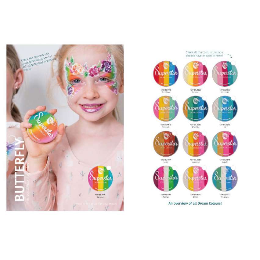 De Dream Colours Splitcake Schmink van Superstar is een hoogwaardige waterschmink met prachtig gecombineerde kleuren. Ook bekend als rainbowcake of splticake biedt deze schmink een soepele applicatie en intense dekking.