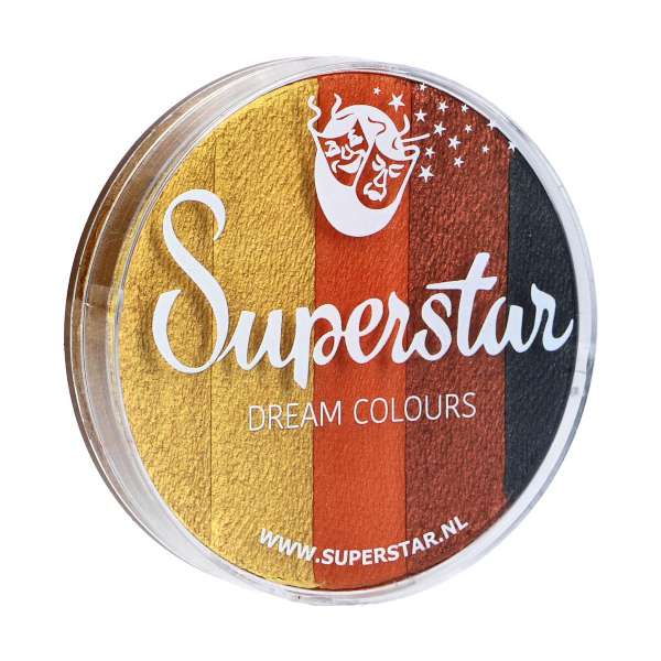 De Dream Colours Splitcake Schmink van Superstar is een hoogwaardige waterschmink met prachtig gecombineerde kleuren. Ook bekend als rainbowcake of splticake biedt deze schmink een soepele applicatie en intense dekking.