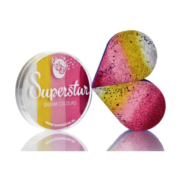 De Dream Colours Splitcake Schmink van Superstar is een hoogwaardige waterschmink met prachtig gecombineerde kleuren. Ook bekend als rainbowcake of splticake biedt deze schmink een soepele applicatie en intense dekking.