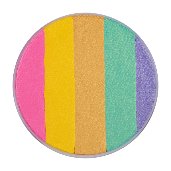 De Dream Colours Splitcake Schmink van Superstar is een hoogwaardige waterschmink met prachtig gecombineerde kleuren. Ook bekend als rainbowcake of splticake biedt deze schmink een soepele applicatie en intense dekking.