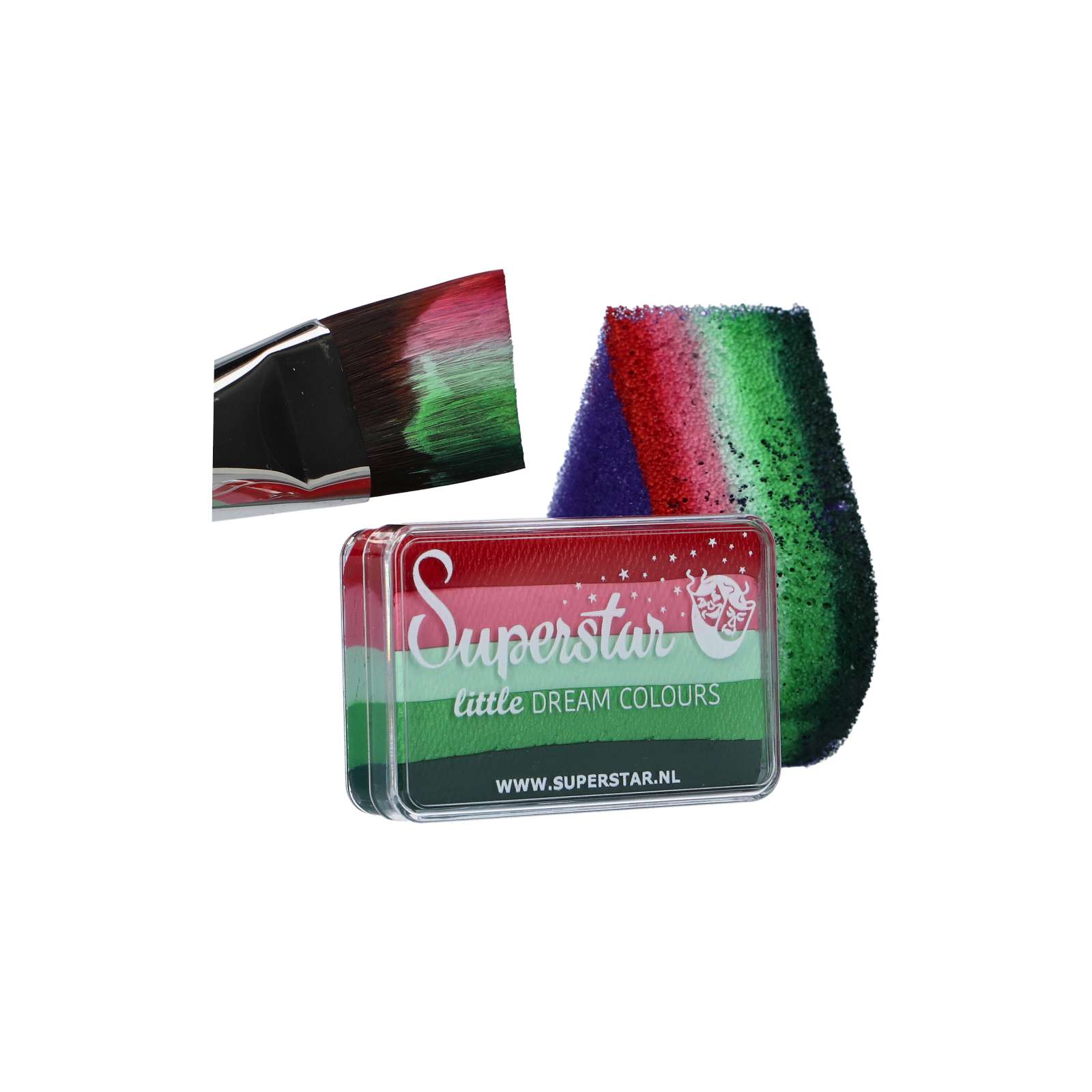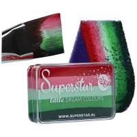 De Dream Colours Splitcake Schmink van Superstar is een hoogwaardige waterschmink met prachtig gecombineerde kleuren. Ook bekend als rainbowcake of splticake biedt deze schmink een soepele applicatie en intense dekking.
