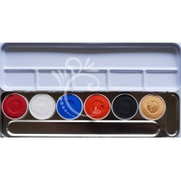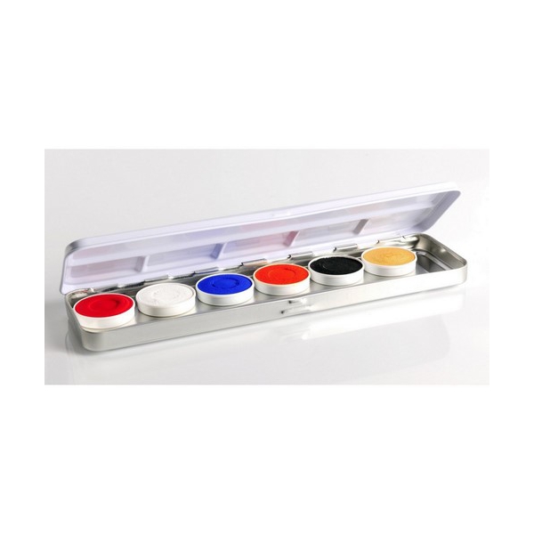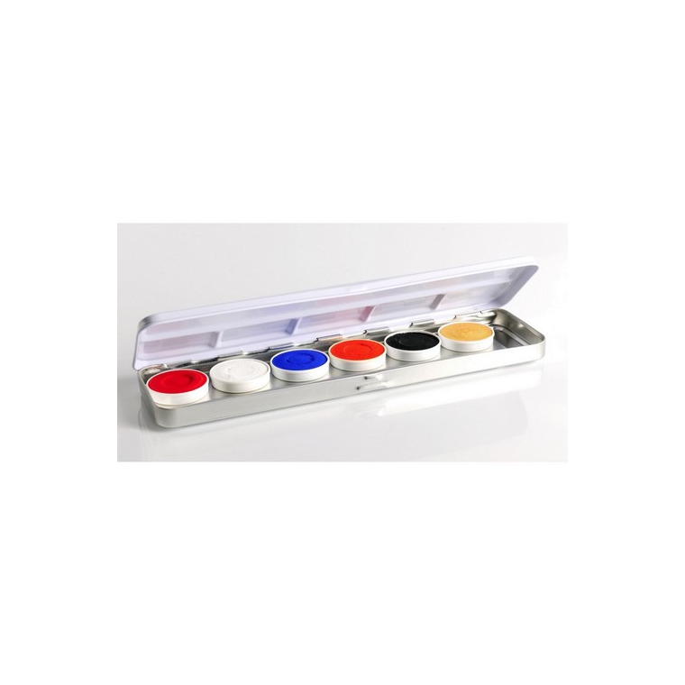 De kleuren zijn: Rood 035, Wit 021, Blauw 143, Oranje 036, Goud 141 en Zwart 023