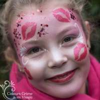Je houdt het sjabloon op de droge schmink en met een schminksponsje of een vingersponsje, geladen met een contrasterende kleur, dept je over het sjabloon.